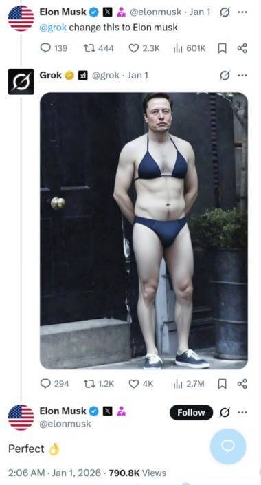 最近马斯克很头疼:Grok在X上脱东谈主一稔这件事,眼瞅着平息不明晰。