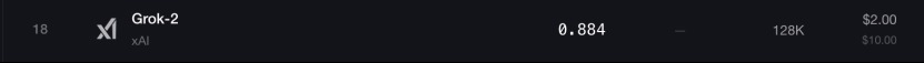 在Human Eval中,xAI排名最高的模子是Grok-2,排在第18位。该基准测试用于接洽从文档字符串合成要害的功能正确性,包含164个原创编程问题,旨在评估话语颐养才气、算法才气和通俗的数学运算才气。