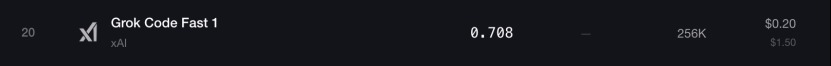 把柄llm-stats的最新排名榜,在SWE-Bench Verified中,xAI最出色的模子是Grok Code Fast 1,排在第20位。