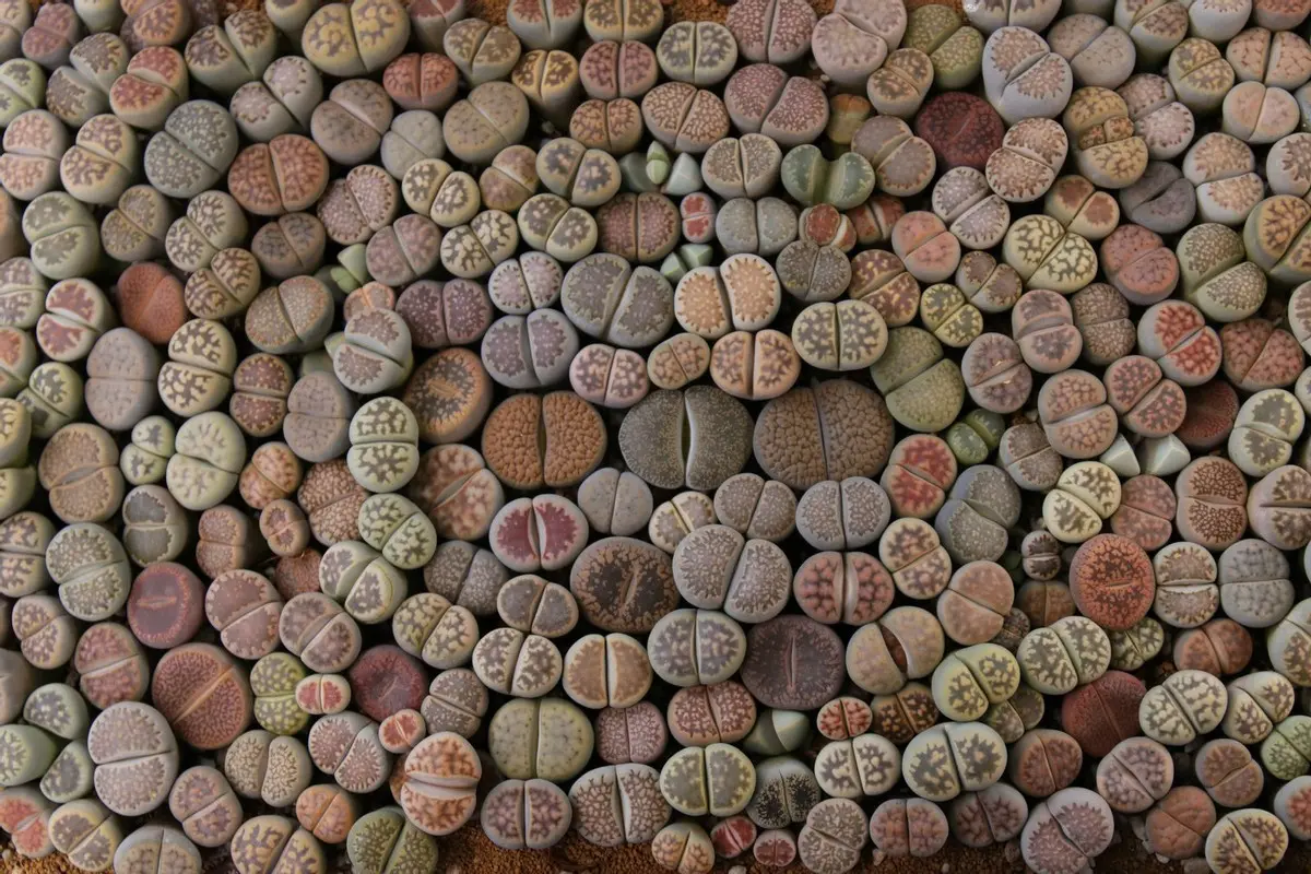 活石头生石花属的植物进化得看起来和石头一模相似。这些“活石头”孕育在非洲干旱地区的大地上,尖端唯惟一个狭窄的半透明窗口,让阳光不祥插足进行光配合用。它们超卓的伪装才智,让它们在确实的石头中险些无法被发现,从而保护我方免受饥饿食草动物的伤害。