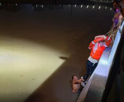 听到巨响,他摧锋陷阵跳下水