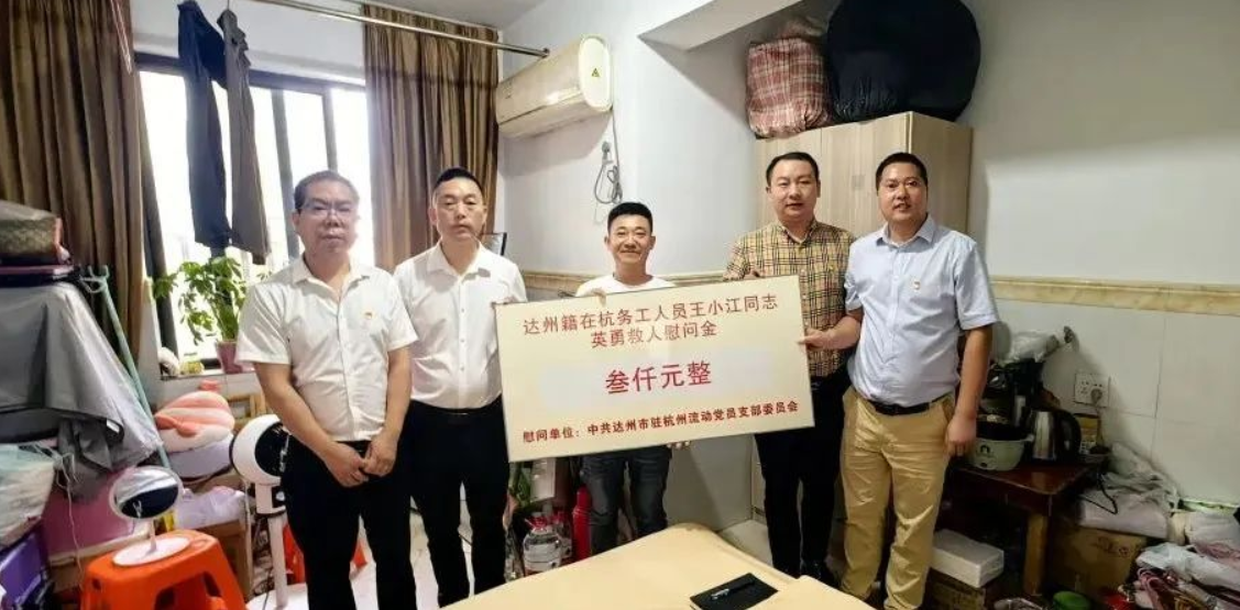 为犒赏王小江扶弱抑强的善举,达州市驻杭州流动党员党支部为他奉上了慰问金,并发出了向王小江学习的倡议。他的斗胆做事也被光明网、浙江卫视、达州发布、达州晚报、临平发布、临平公安等多家媒体报说念。